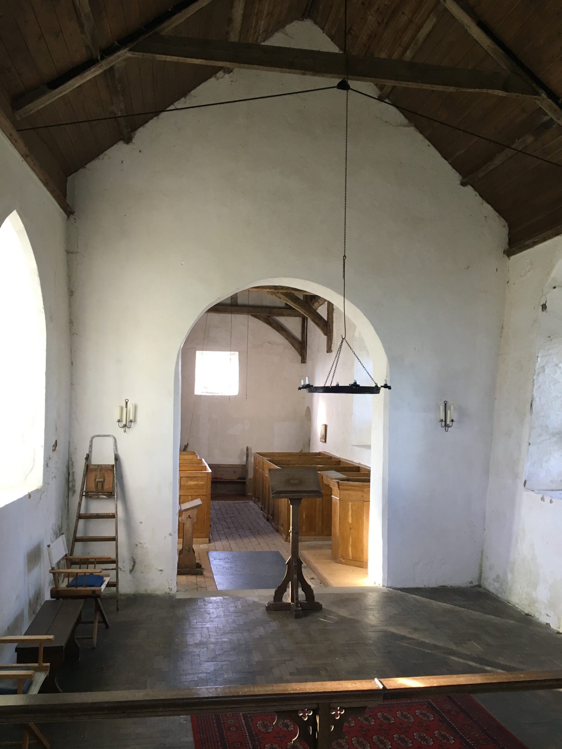Isolated building reached by grass track. Parts date from Norman times with evidence of alterations over centuries. Victorian box pews. No power supply.
