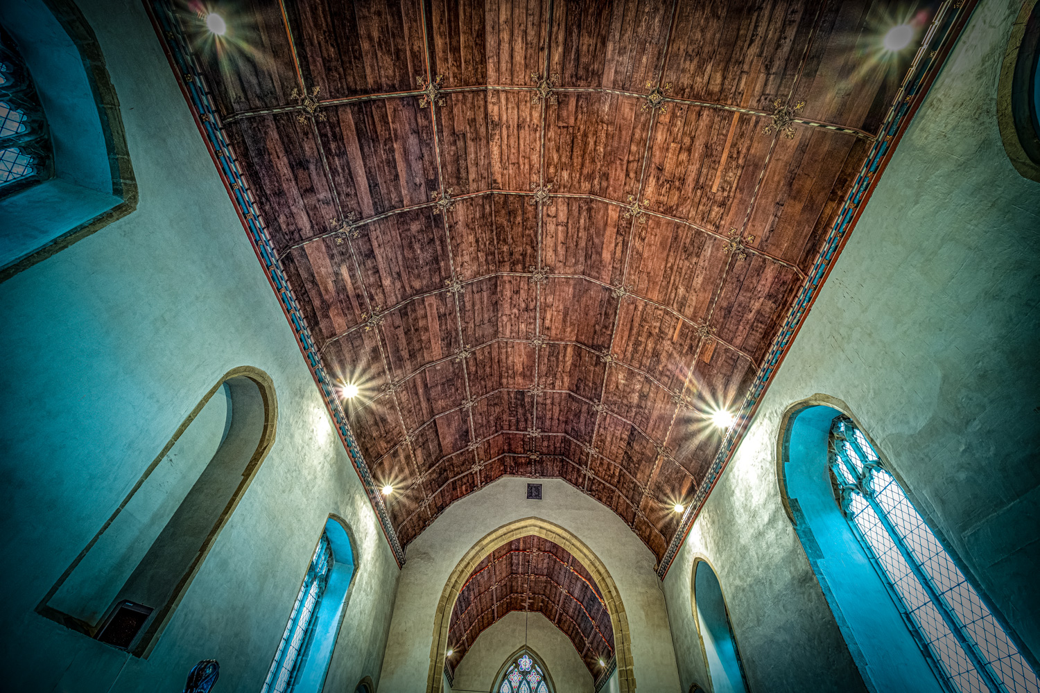 Open daily dawn to dusk.The Church of The Holy Cross sits prettily by the village green. In 1853 the thatched roofs were replaced with slate and then rethatched in 1973 with Norfolk reed. The fine tower dates from the 14th century. Unusually, the entrance is at the west end through a distinctive ogee doorway beneath a Decorated window. Step through into a lofty, bright interior. Charming animal figures sit on some of the bench ends. The majority of the glass on the south side of the nave fell victim to bomb damage in World War Two. One window features a jumble of fragments of medieval English and European glass arranged in roundels. Look carefully and you'll see St Catherine's wheel and a thief on a cross. Beyond the chancel screen on the right are misericords depicting heads and leaf motifs. The main treasure here is the candelabra. It was presented by Charles I to a church in Hertfordshire and was subsequently given to The Church of the Holy Cross in 1871. Perhaps it came from Hampton Court Palace originally.