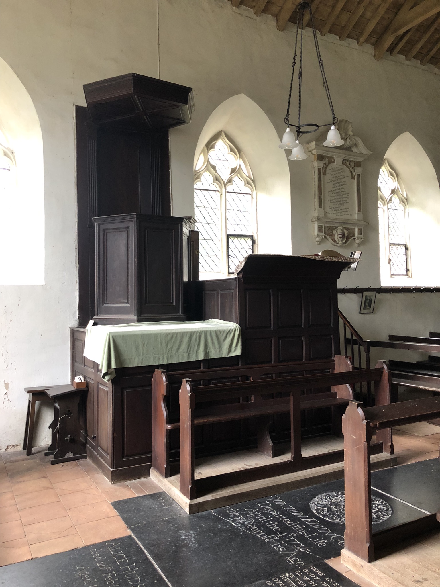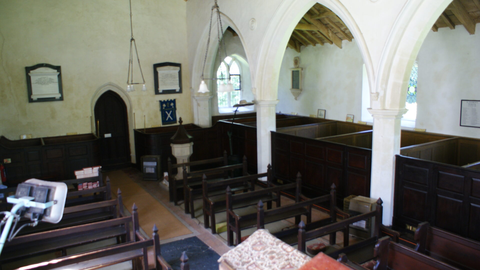 The church has changed little in the 700 years since it was built. A small church, now boasting a three-decker pulpit and dark oak fittings, including box pews which were allocated to, and used by, families of local houses and farms (the result of a donation by Corpus Christi College, Cambridge in the C19).