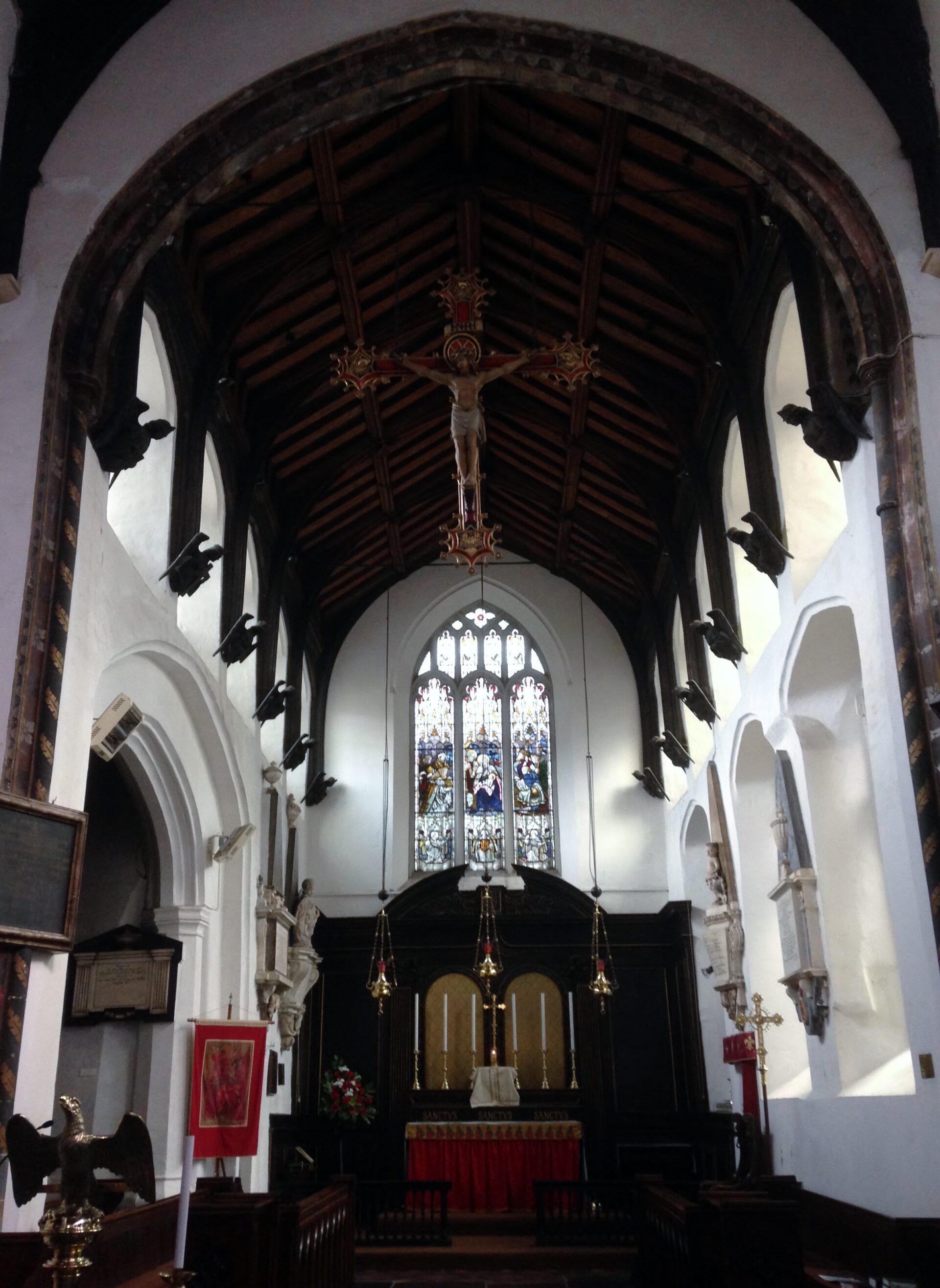 C13 building with C13 font of Purbeck Marble. Twelve Angels on the chancel roof beams. A Georgian reredos and pulpit, many interesting wall monuments, and images of St George and the dragon. The church was Highly Commended in the Most Welcoming Church Award 2016.
