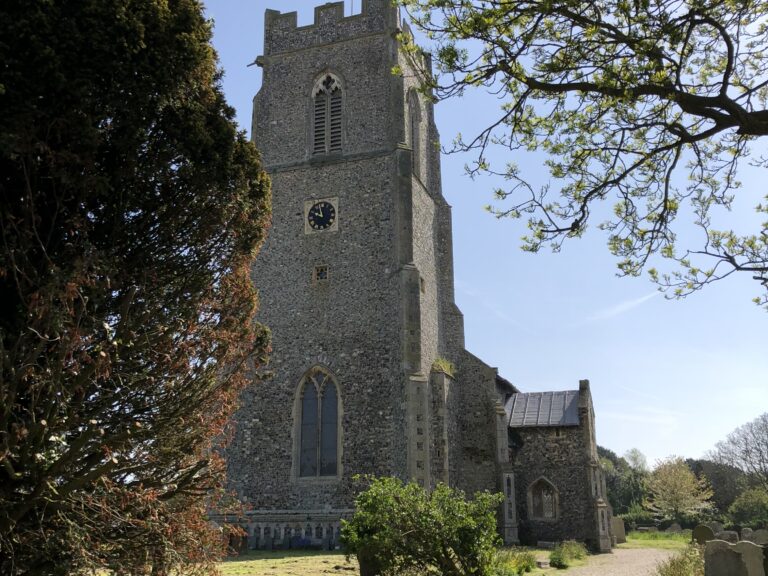 A medieval church and tower dating from the early C14, built by the monks of Norwich Cathedral Priory, with medieval bosses retained in the roof and porch. There is a beautiful east window designed for the Parish by Caroline Swash and installed in June 1985.