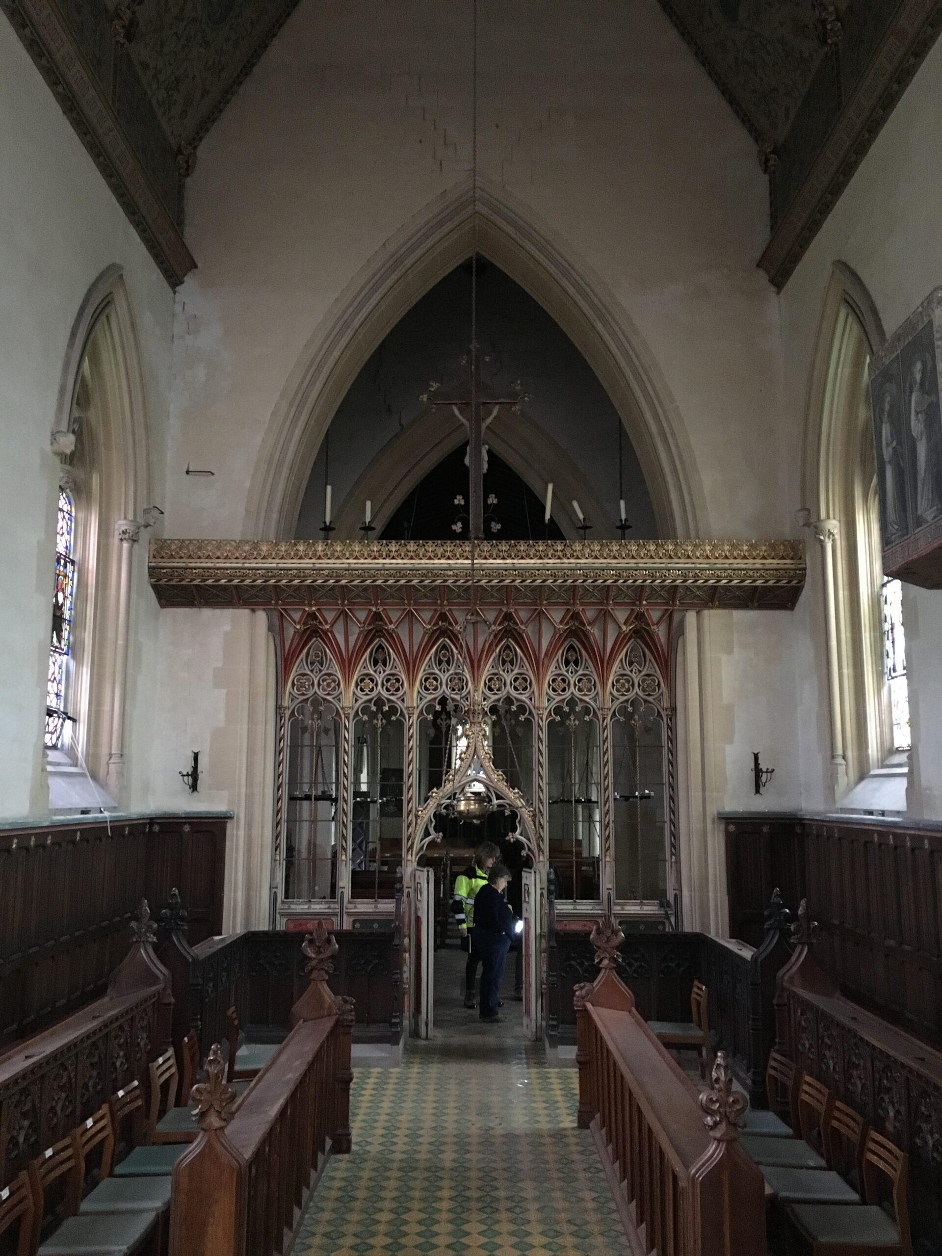 St Mary's Church is located on the MoD's STANTA base and access is highly restricted. The villages of West Tofts, Stanford, Langford and Tuttington became deserted when the area was requisitioned in 1942. The church is of great interest and is one of the most noteworthy of its kind in the country - a medieval church having been partly rebuilt by the 'Morning Star' of the Gothic Revival, A.W.N. Pugin. It displays some of the finest 19th century architecture in East Anglia. The north arcade and piers date to the early 14th century. The tower is later, in the Perpendicular style. Around the base-course, inscribed in stone, is a very rare catalogue of the names of the people who funded its construction, 'the begyners of the werk'. Revd Augustus Sutton became the incumbent in 1849. He was the son of Sir Richard Hutton, one of the wealthiest landowners in England at the time. Pugin drew up plans for an extensive restoration which included the rebuilding of the north aisle as a Sutton family burial chapel, the creation of a larger chancel, a south porch, and the addition of pinnacles, a spire (removed in 1930), stained glass and new bells. No expense was spared. The highly skilled workmen had experience on Pugin's projects at Catholic cathedrals and the Houses of Parliament. Even with the absence of most of the furnishings, which found homes in other Norfolk churches, the opulence of the interior is breath-taking. The beautiful parclose screen, in the East Anglian style of the 15th century, displays the Sutton motto 'Tout Jours Prest' (always be ready). The most remarkable feature of the church is the Sutton Chapel, an extravaganza of design and colour from the the painted ceiling to the floor tiles. The tomb is that of Mary, wife of Sir Richard Sutton, and their infant son. The tomb has a canopy with crocketted gables, supported by trefoil arches on marble pillars. The magnificent reredos is made of Caen stone and depicts Christ with the Evangelists.Incorrect information? Update this entry