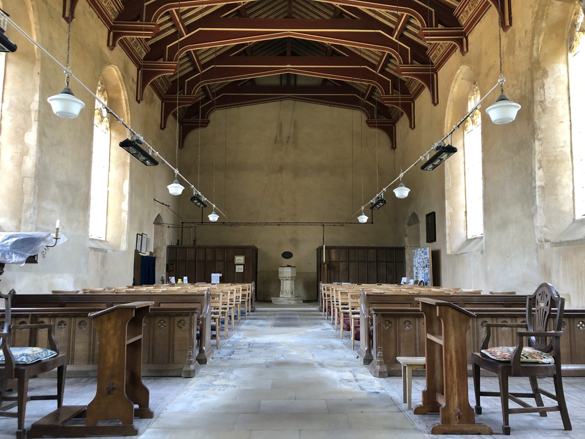 A C14 church with richly decorated nave roof timbers.