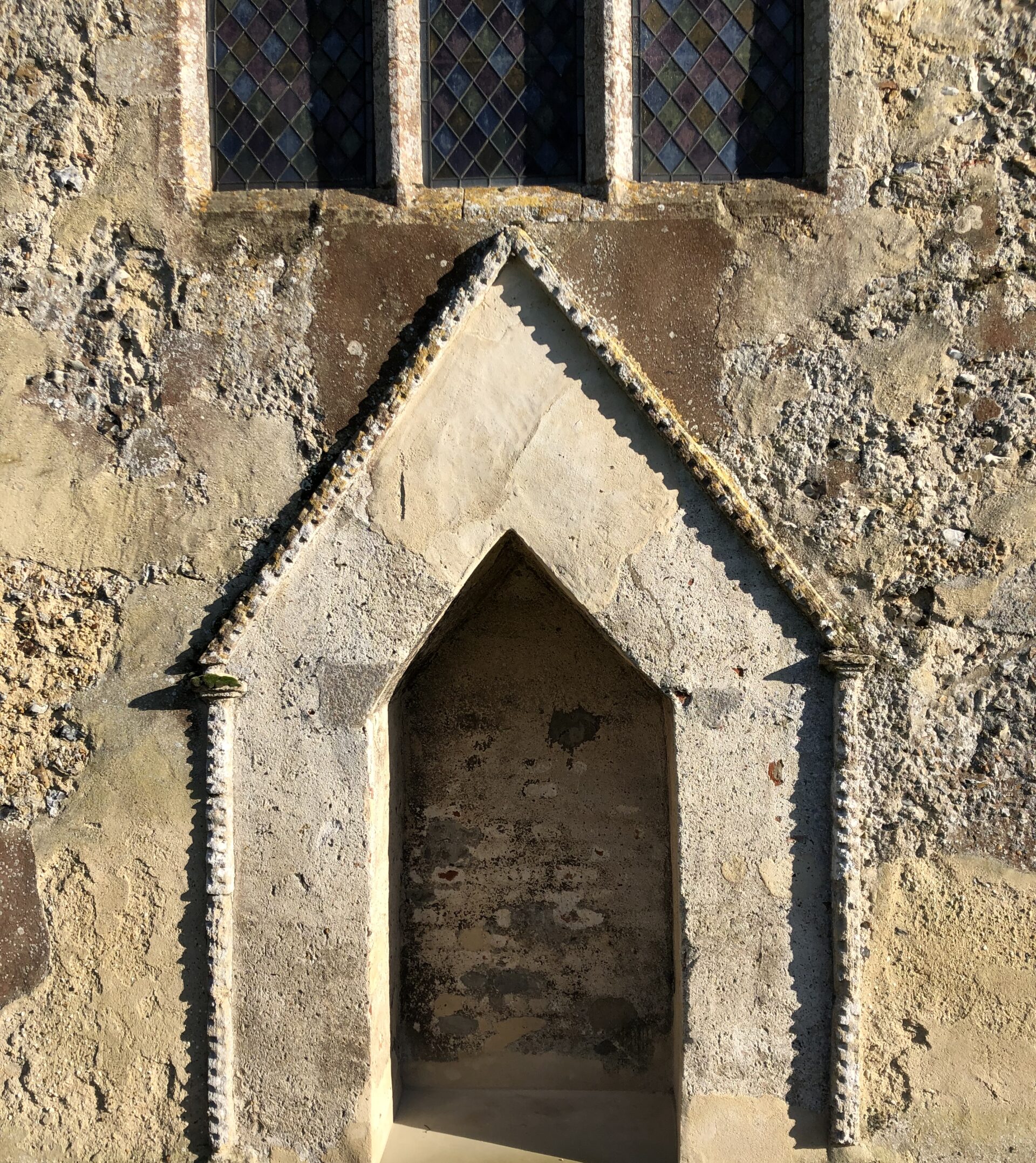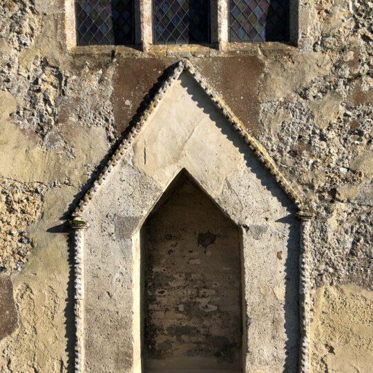 - ‘Long and short work’ at the corners of the church. This consists of large stones laid horizontally and vertically on top of each other