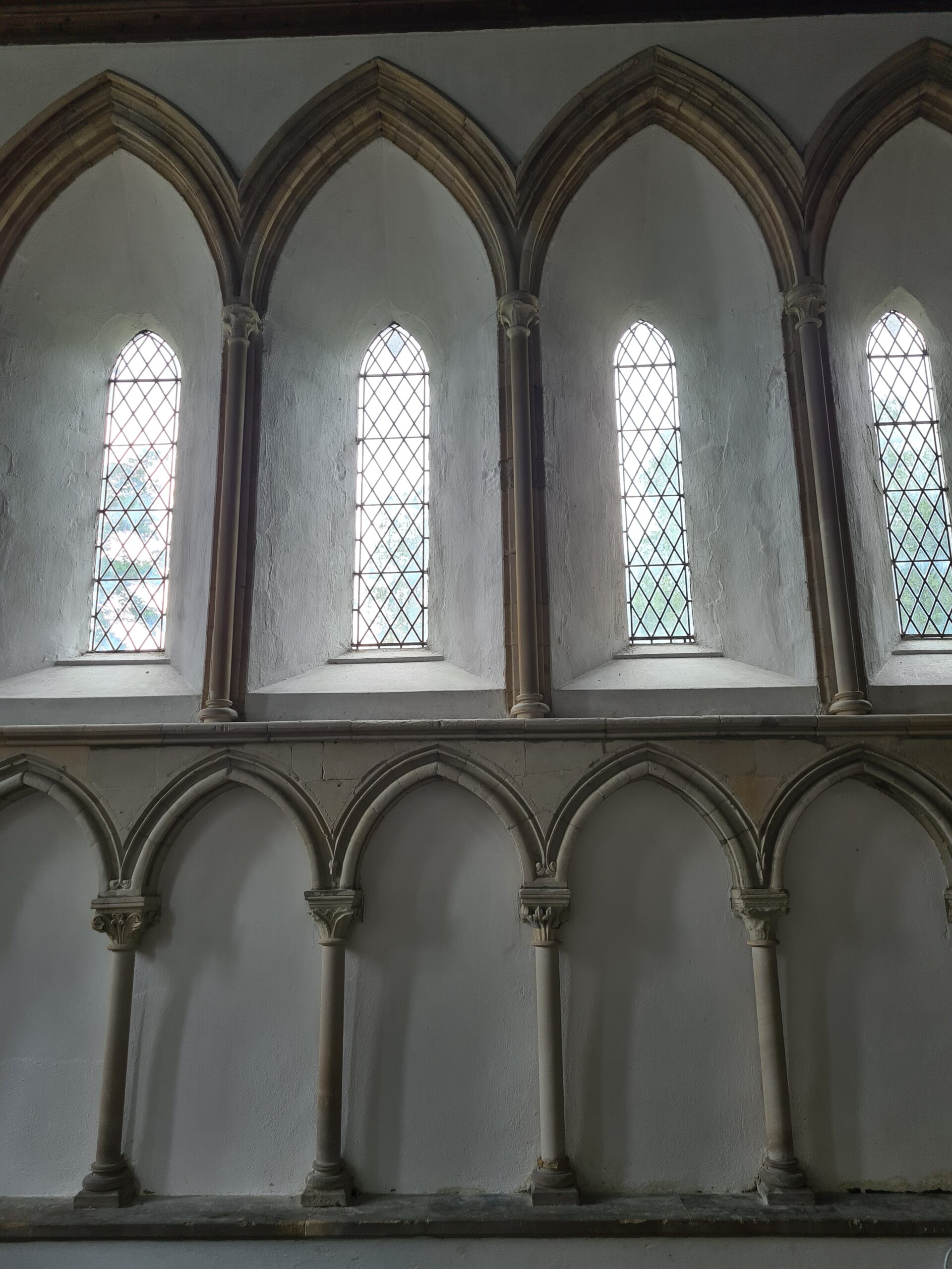 - Early English elements (pointed arches, tall spires and towers, and narrow windows)