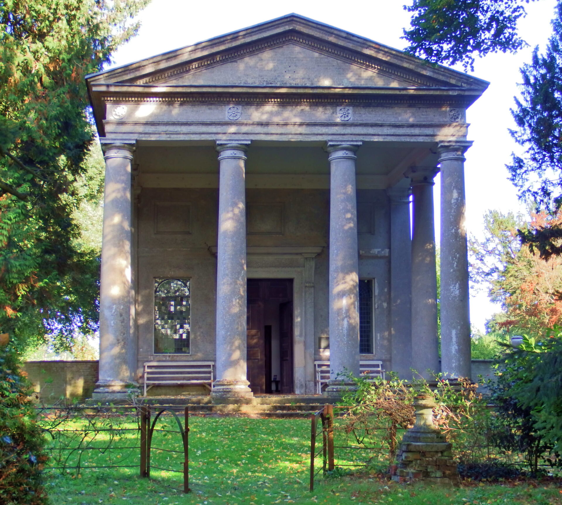 - Classical pillars of Ionic, Doric or Corinthian design