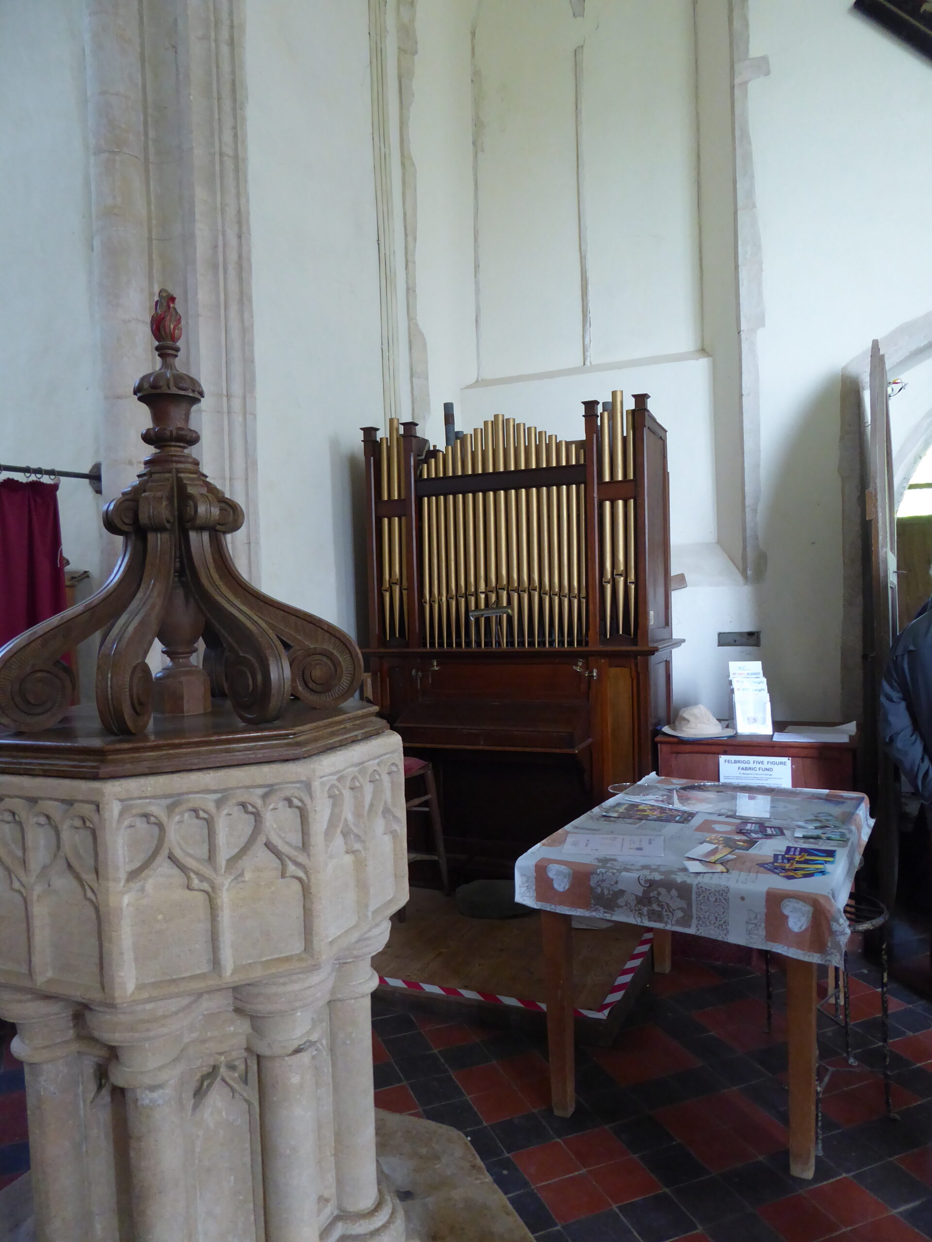 St Andrew’s Church stands in the park of Raveningham Hall and marks the site of the original village. It has a Norman round tower with a 14th century octagonal upper stage, containing a peal of five bells. Step through the grand south door, with wrought iron 13th century crosses, into a bright and airy space. The chancel has canopied memorials on each side, containing commemorative tablets to several members of the Bacon family, dating from 1820. Look carefully and you will notice that the figures on the north side are different to those on the south. A fine brass to Margaret Castyll of 1483 also depicts her dog with bells on its collar and a dragon (St Margaret’s attribute). A large marble monument in the nave, complete with an urn, is dedicated to Major Edmund Hodge who fell in the Battle of Waterloo. The font depicts the symbols of the evangelists and saints.