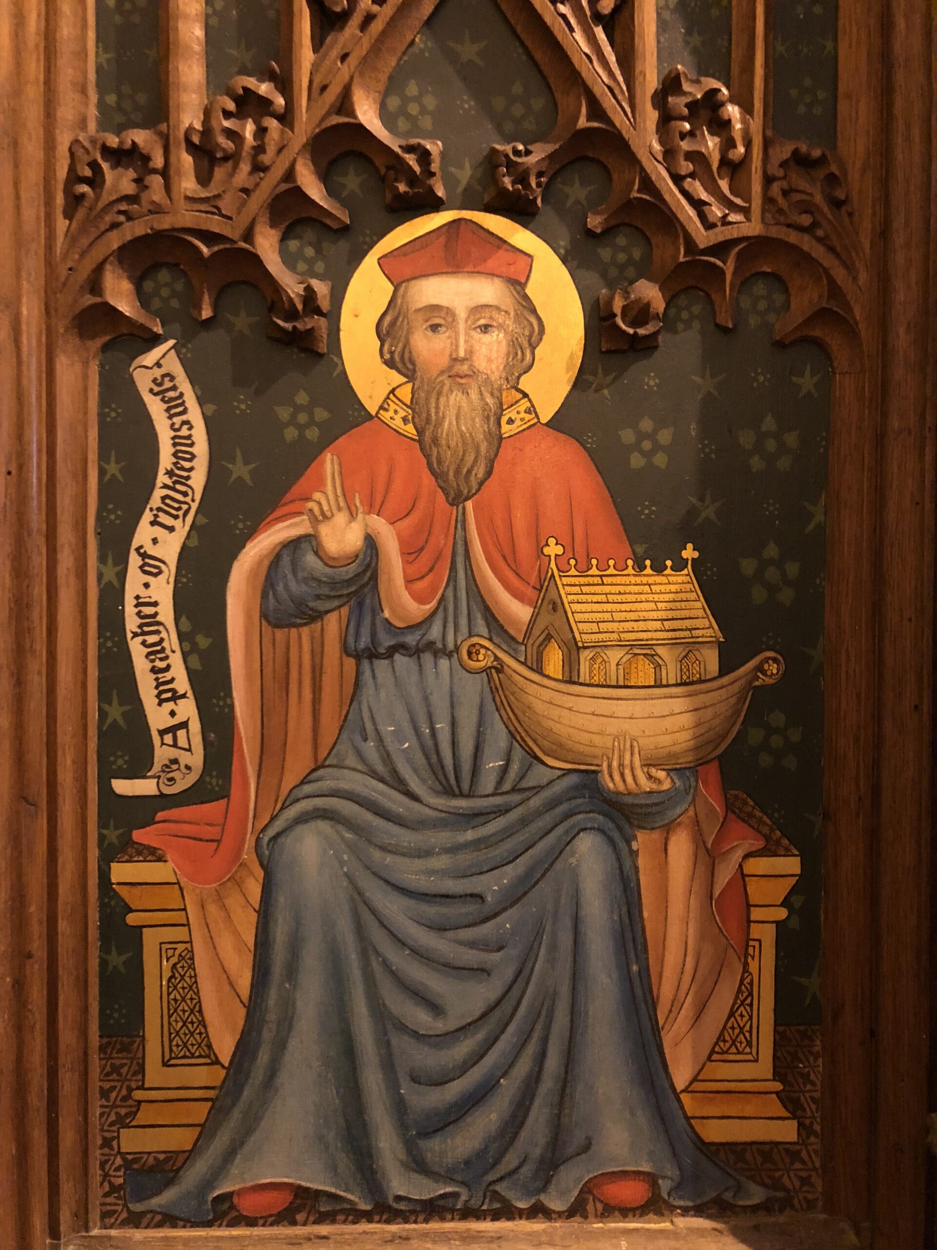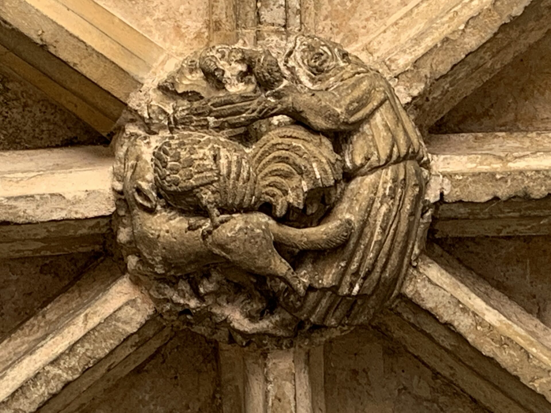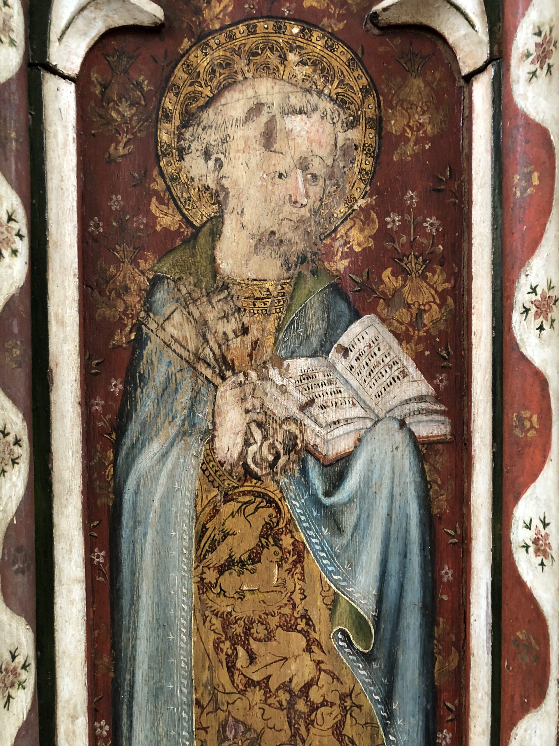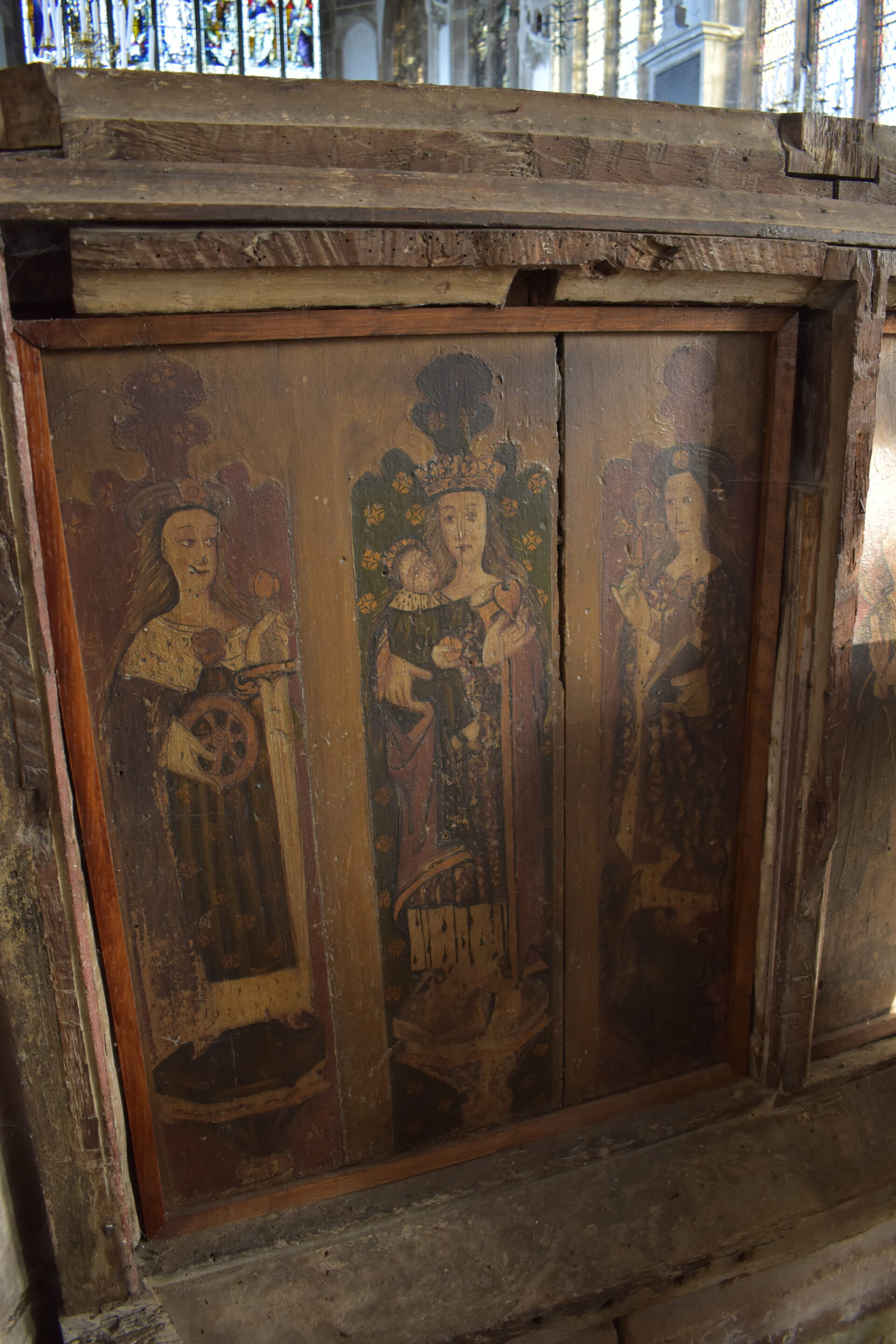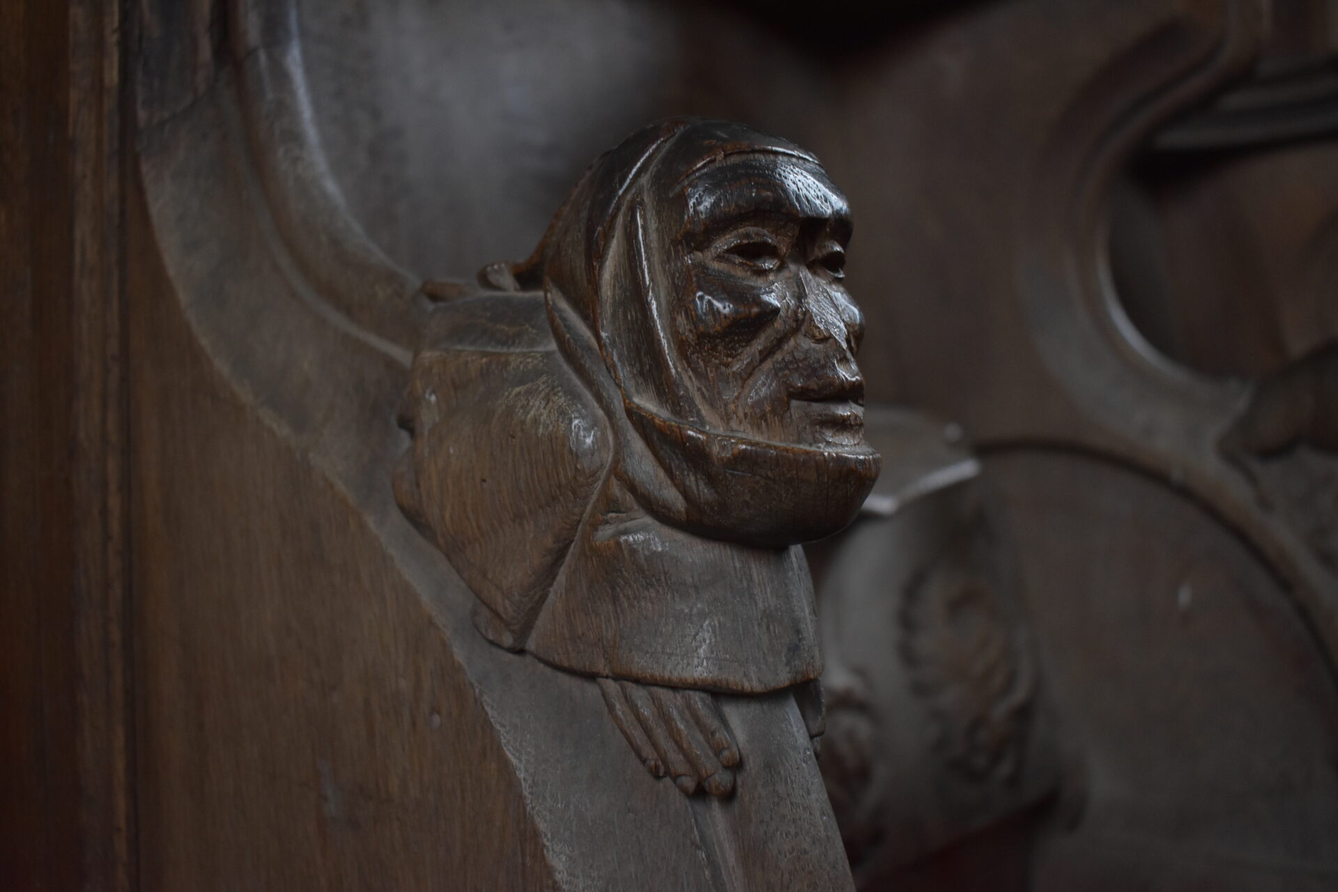 In the words of the poet and writer Sir John Betjeman, the Church of St Peter is ‘the finest of all.’ The impression it leaves on visitors is evident in the names bestowed on the church, including Cathedral of the Fens and Queen of the Marshlands. The original church dates to 1021 however a flood in 1337, possibly caused by a tidal wave from an Icelandic volcano, destroyed everything but the tower (which was built in 1300). This area of northwest Norfolk prospered greatly from the wool trade and its proximity to thriving ports such as King’s Lynn (previously called Bishop’s Lynn). A replacement church was built in 1360 and the chancel was added in 1425. In terms of style, the nave is Transitional Perpendicular and the chancel is pure Perpendicular. A highly unusual feature is the ‘bolt hole’, a passageway underneath the sanctuary to allow for processions because the church was built up to the edge of the churchyard. As a result, there are 15 steps up to the altar. The south porch is one of the finest in Norfolk, complete with a parvis chamber above. Carvings include the pieta, a pilgrim and the arms of the See of Ely. At the east end of the nave is the sanctus bellcote; the bell is still rung during Eucharist. Look up when you enter the porch at the characterful ceiling bosses depicting the Assumption and the Last Judgement along with various animals. Bosses can also be seen on the roof of the bolt hole – notice the sheep’s head. On stepping inside the church, admire the original doors which have been preserved. In the nave is the unusual ‘hudd’, a graveside shelter for the minister when conducting a funeral in the rain. The magnificent screen along the west end dates from the 1620s and its lockable doors historically created a barrier between the church and secular gatherings. Marvel at the vista towards the east end. The expanse of clear glass creates a bright and airy feel. The majority of the coloured glass was removed in the late 18th century: see fragments in a north aisle window. There are 30 mason’s marks in the church. In the north aisle is a Seven Sacrament font, unfortunately defaced during the Reformation, complete with an ornate font cover. Don’t miss the ‘poore box’ dating from 1639. The wine glass style pulpit is also Jacobean. Twelve saints are depicted on the 15th century rood screen; the outer six are women and the inner six are Apostles. This seems to be the work of more than one artist. The chancel is a magnificent space full of decorative features. Notice the jolly carved creatures on the stalls, including an antelope and St Edmund’s head guarded by a wolf. Beautiful 15th century carvings can also been seen on the pews in the south aisle.
