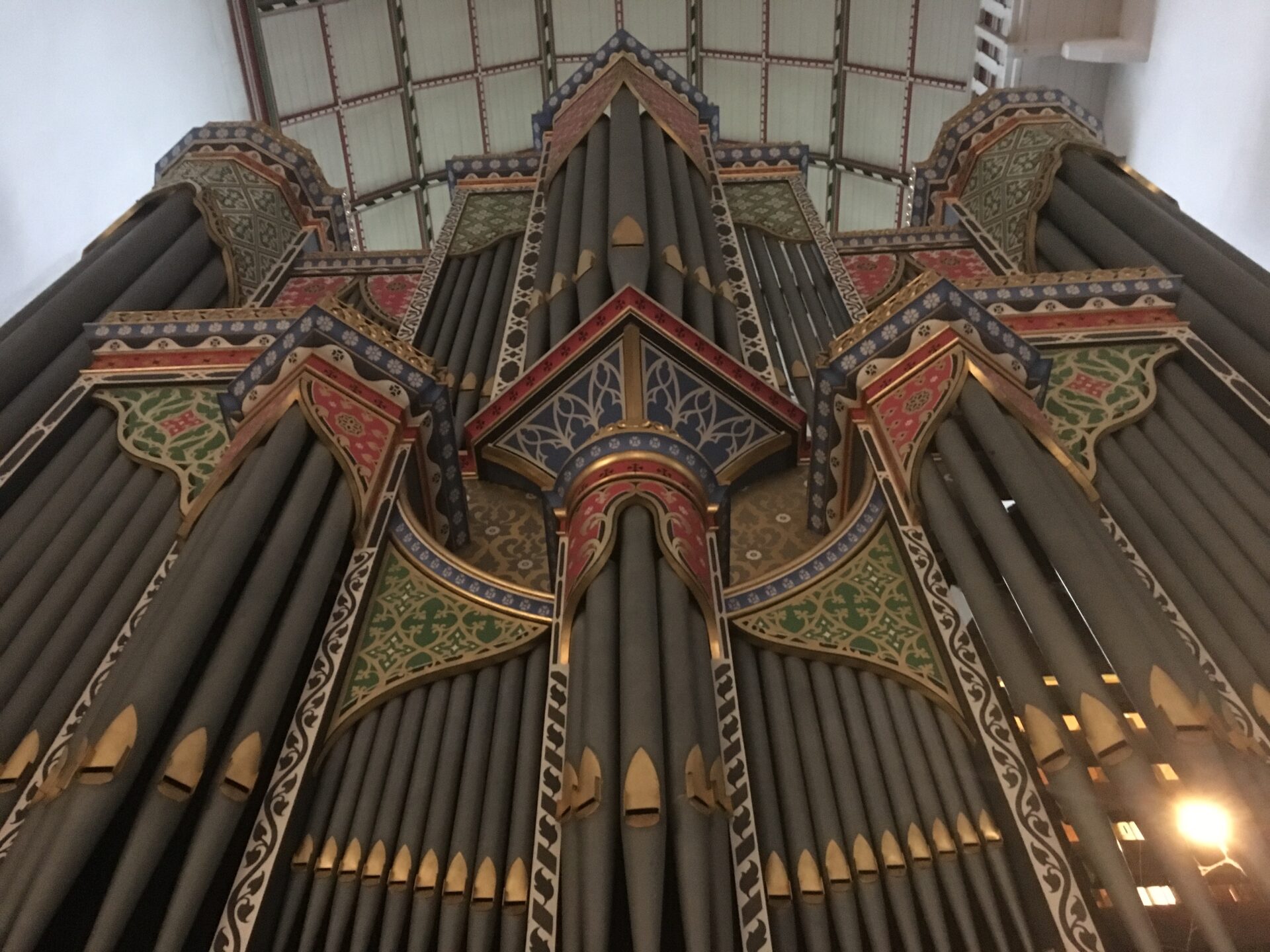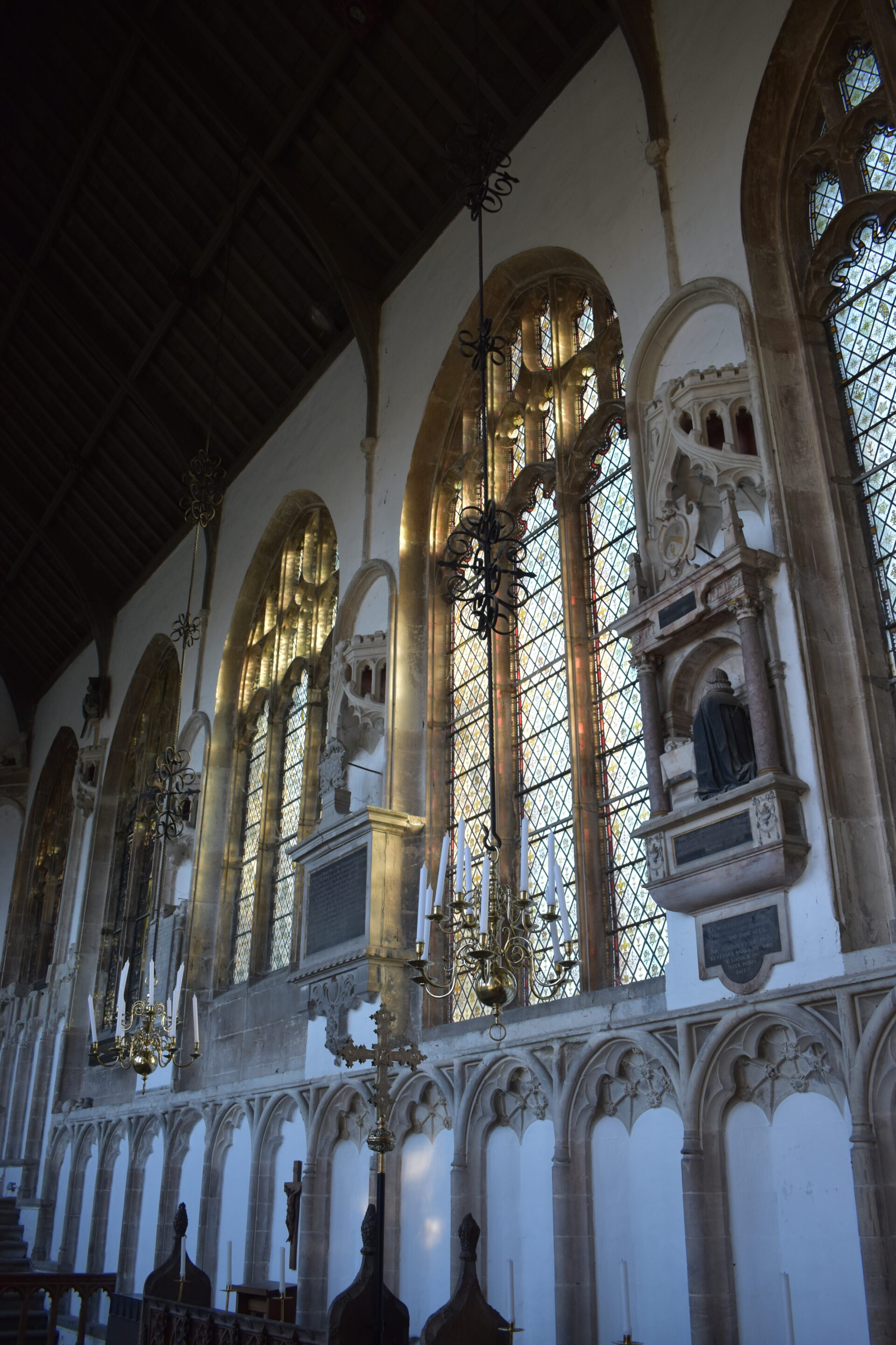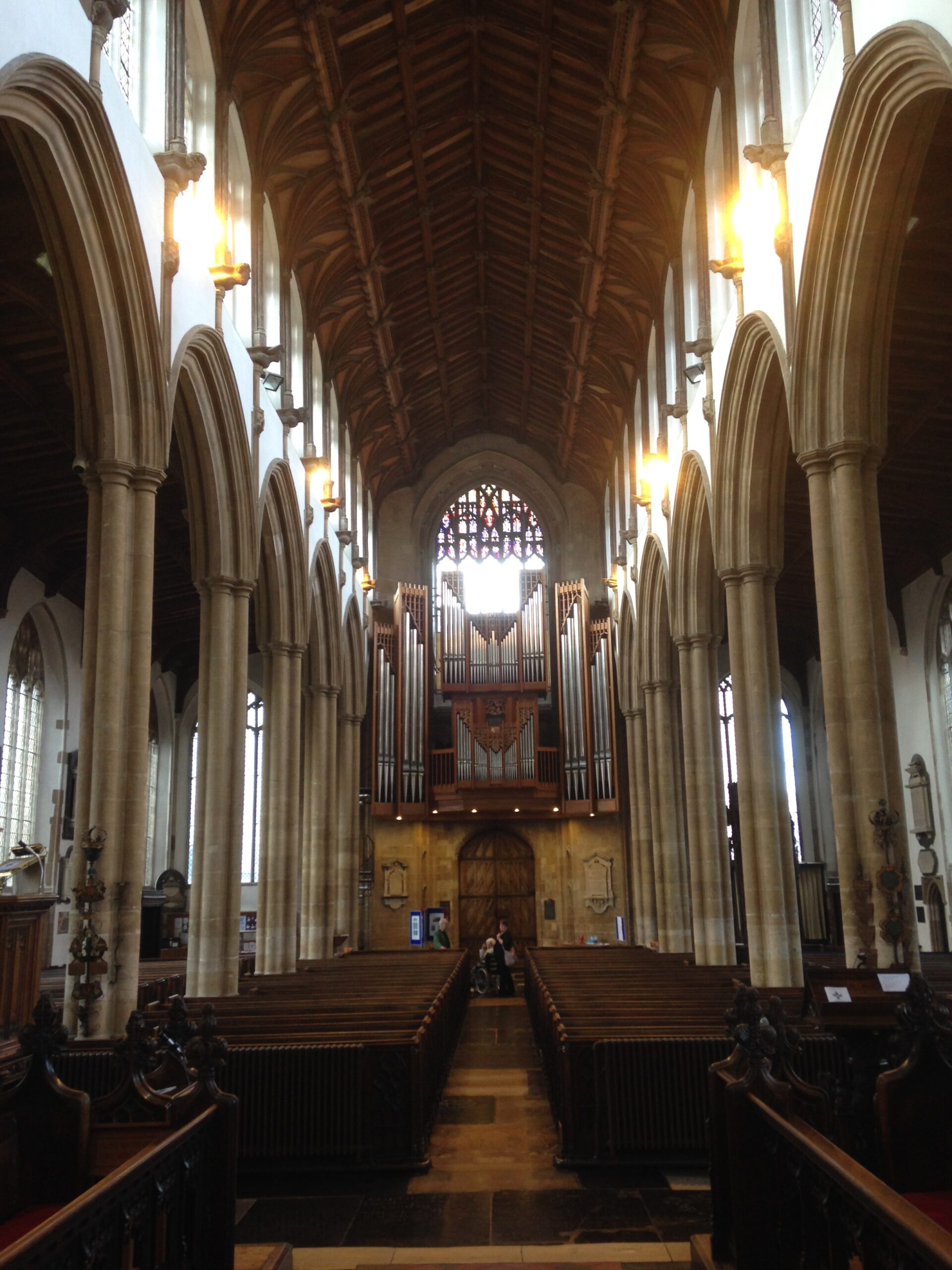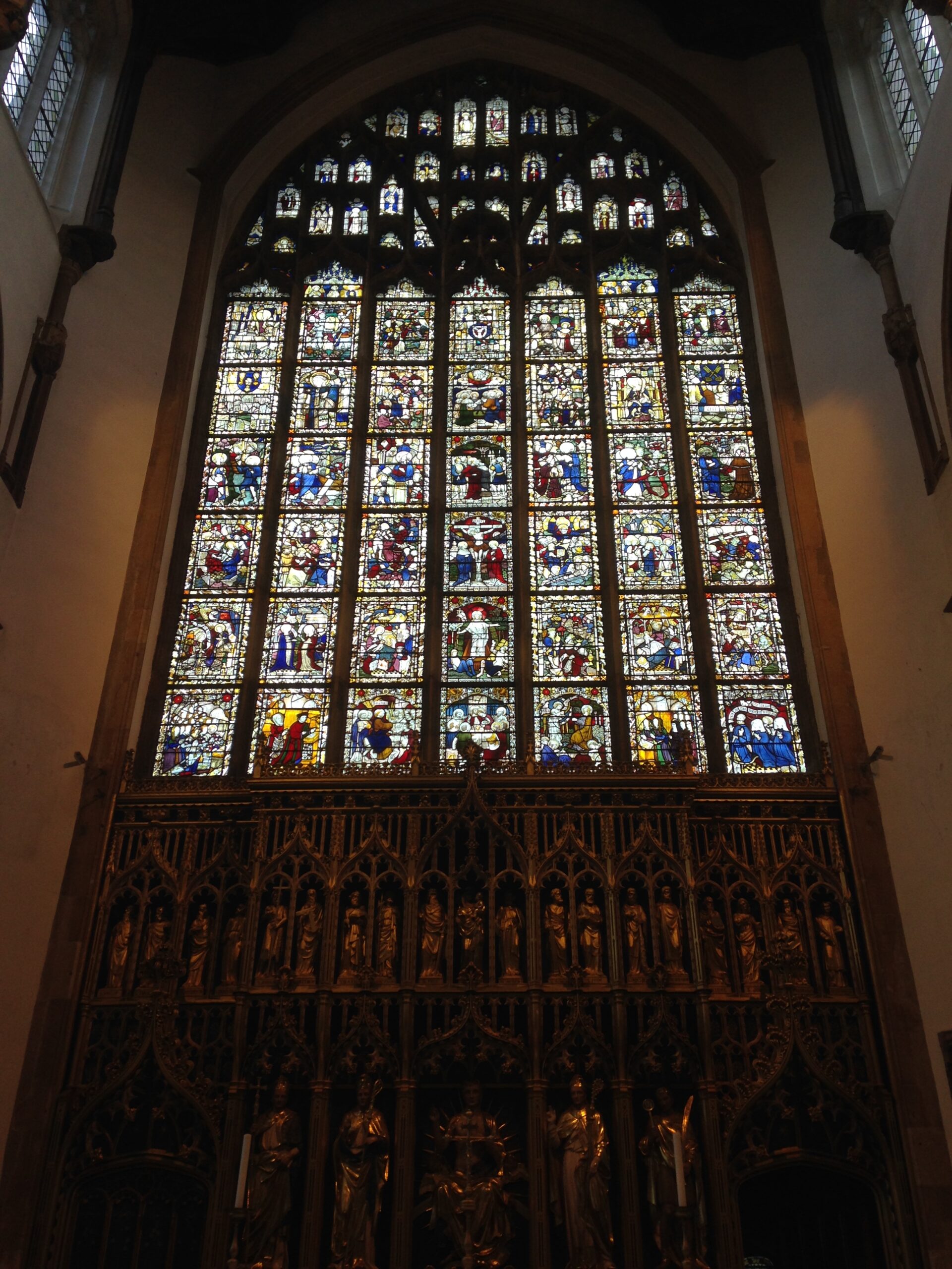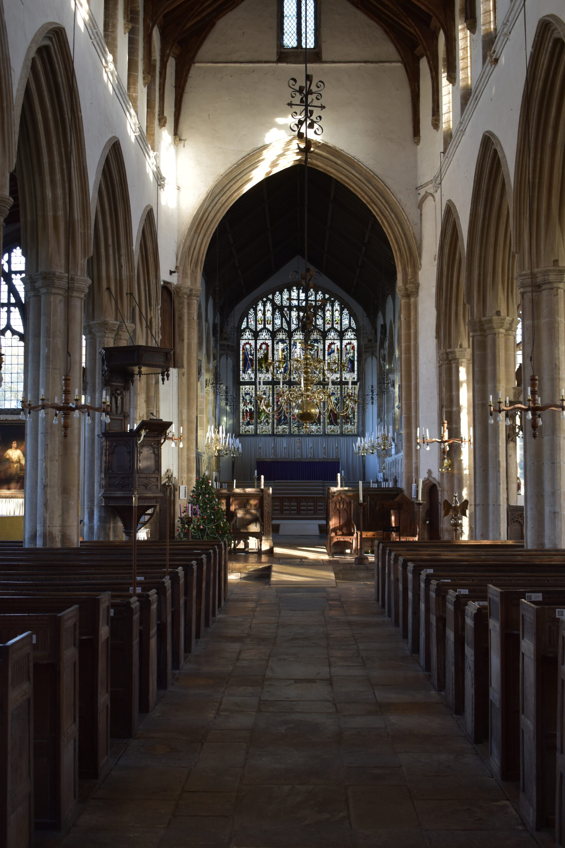 Located in the marketplace in the heart of the medieval city of Norwich, St Peter Mancroft is the largest of the city’s 31 surviving medieval parish churches and one of the very finest perpendicular parish churches in Norfolk. It is a powerful symbol of civic pride and is sometimes mistaken for the Cathedral. The church, whilst magnificent inside and out, is remarkable for the excellence of its exterior. Entirely rebuilt and finished in 1455, it stretches between two thoroughfares and therefore has arches on the south and north of town and a passage under the east end so that processions around the building could be on consecrated ground. This church is known for its medieval stained glass, its collection of medieval and renaissance treasures and its importance as a pioneering tower in the uniquely English art of change-ringing on church bells. John Wesley said of it: “I scarcely ever remember to have seen a more beautiful parish church; the more because its beauty, results not from foreign ornaments but from the very fine form and structure of it. It is very large, and of an uncommon height, and the sides are almost all window; so that it has an awful venerable look and, at the same time, surprisingly cheerful.” The tower is crowned with a modern fleche after the style of that at East Harling. The magnificent clerestory of 17 large three-light windows has very narrow piers between them with little buttresses outside. The nave and chancel are continuous and the aisles stop one bay short of the east end to allow windows to light the altar. The astonishing east window with 15th century Norwich School glass is second only in quality to that of East Harling. As at East Harling, the glass was removed during the Second World War. There are 42 original panels and 7 modern. The treasury is a three storey structure containing the Sacristy on the top floor, below the vestment chamber which still contains the beam rom which they hang and below that a crypt. The Sacristy is full of interesting things such as medieval documents, an alabaster carved with four of the Evangelists, a “Gotoh” or ringers jug holding 36 pints, and, last but not least, magnificent church plate.
