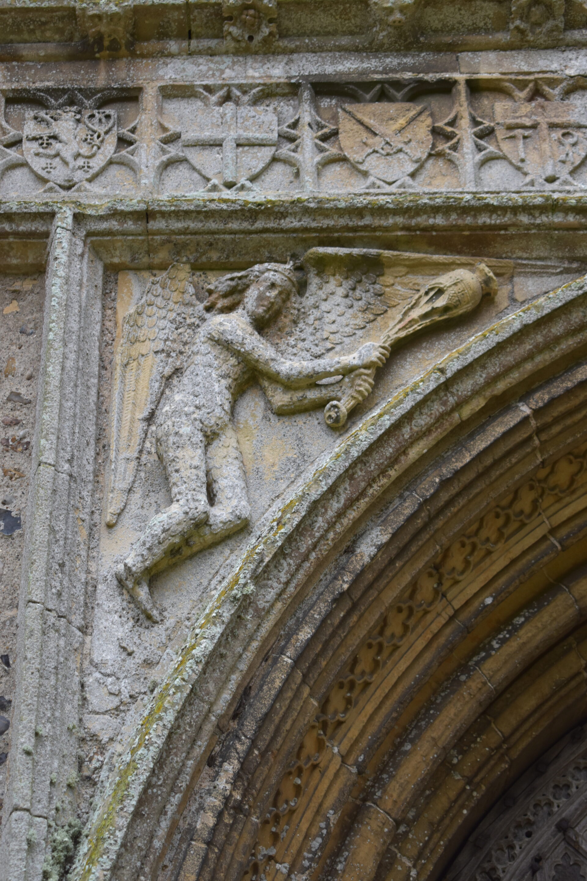 Author and architect Henry Munro Cautley described St Peter & St Paul’s Church in Salle as ‘the finest church in Norfolk’. It has examples of nearly everything a church should have and the vast majority is of a piece, dating to the 15th century. The building of the church, which occurred as a single construction project, was unusually funded by not one but by several wealthy local families as an act of piety. These families included the Boleyns, Briggs and Luces. As such, no expense was spared. Bequeathing a church and its furnishings ensured that one’s soul would remain in the prayers of worshipers after death, in the mutually beneficial channel of prayers flowing between the living and the dead. The 126ft battlemented tower is visible for miles around – just look at the size of the traceried sound holes. The west doors are beautifully decorative and carved above are two feathered angels swinging incense burners. Flanking them on either side are canopied niches and above are armorial shields. The third from the right is the arms of Henry V as Prince of Wales (1400-13). Unusually this is the main entrance. Enter and step back in time. The soft ticking of the tower clock reminds the visitor that time hasn’t stood still. Enjoy the sense of immense space; the church has a total length of 171ft, just longer than that of Walpole St Peter. The nave is 28ft wide, the aisles 14ft wide, and across the transepts no less than 98ft. The Seven Sacrament font stands on two steps. The top is traceried and the bottom is inscribed with a request for prayers for donors John and Agnes Luce, and their son Robert ‘and for those whom they are bound to pray who caused this font to be made’. The bowl features depictions of Baptism (SE), Ordination (S), Mass (SW), Crucifixion (W), Extreme Unction (NW), Matrimony (N), Penance (NE), Confirmation (E). It is unique in one respect for below the panels are the emblems of each sacrament: a casket of oil for Baptism, a mitre for Confirmation, an altar slab for Mass, a rod for Penance, a soul rising out of a shroud for Extreme Unction, and a chalice for Ordination. Angels adorn the nave roof, along with monograms and crowned letter ‘M’s. The chancel roof is decorated with beautiful carvings. From the west are the Annunciation, the Nativity and Shepherds, Adoration of the Magi, Entry into Jerusalem, Last Supper, Resurrection and the Ascension. Coloured bosses can also be seen in the north porch. Unfortunately the rood screen fell victim to the iconoclasts. There are eight mutilated painted panels, with the four Latin Doctors on the doors. The 15th century pulpit has traceried and coloured panels with a Jacobean backboard and canopy. There is also a Jacobean prayer desk and clerk’s desk. The exquisite medieval stained glass deserves careful examination. Bring your binoculars to admire donor Thomas Brigg and his two wives, fragments of the nine orders of the angels, Old Testament prophets with flowing beards, princes with old kneeling kings and female saints. Don’t miss the menagerie of carved animals and faces on the arms of the chancel stalls and on the misericords.
