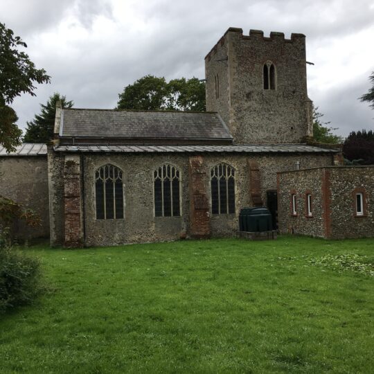 This is a flint church of Norman origins. Its distinctive short round tower is very much in contrast to the soaring towers of neighbouring Salle and Cawston. Large clear glass windows, some with medieval stained glass, illuminate the carved benches of the church which has lain almost untouched for over a century. The north aisle was originally the nave and contains traces of 12th century work. Look out for a tablet remembering Anthony and Preston Enright, sons of the Rector of Brandiston, who were both killed 18 months apart in the First World War, at the ages of 21 and 19 respectively.
